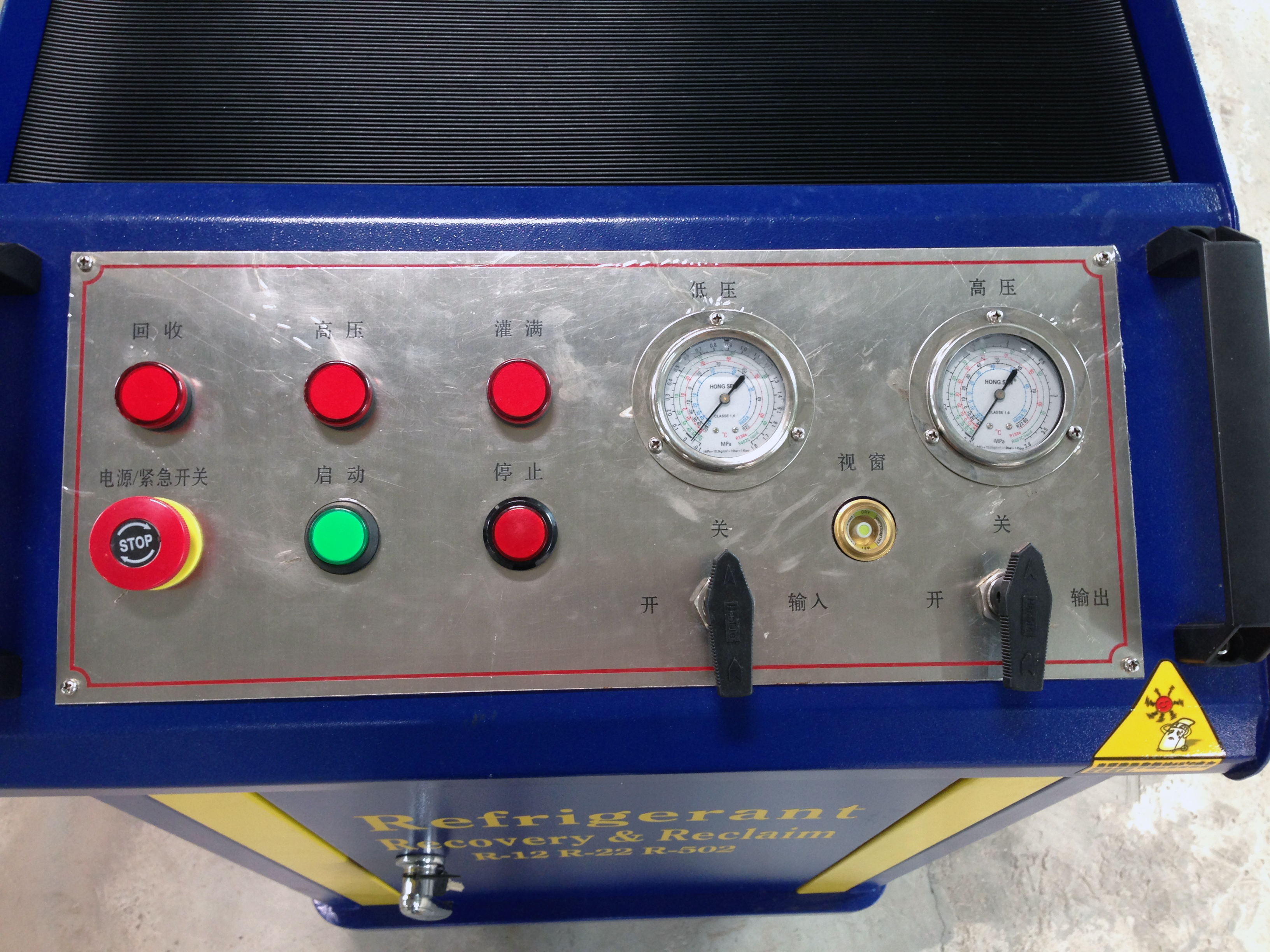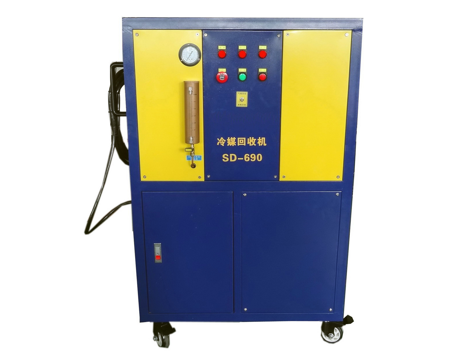 一種回收制冷劑的設備,用于回收制冷機械(冰箱、空調、冷柜等制冷機)中的制冷劑。回收的同時又對制冷劑進行一定的處理,如干燥、雜質的過濾、油分等,以便于制冷劑的二次利用。
